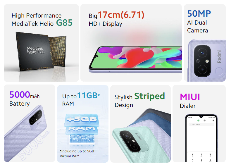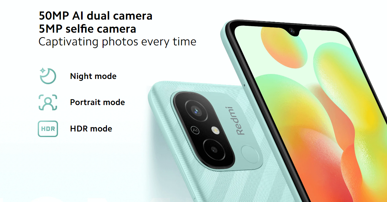 Xiaomi Redmi 12CKey Features AI Dual Camera Camera Samples Powerful Processor Enhanced SmoothnessMicroSD Card Support Go Big On Entertainment5000mAh Massive Battery Rear Fingerprint Sensor