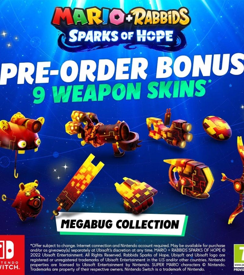 Team up with Mario, Luigi, Princess Peach, Rabbid Peach, Rabbid Luigi, and their friends on a galactic journey to defeat a malevolent entity and save your Spark companions. Explore planets throughout the galaxy as you uncover mysterious secrets and compelling quests!
