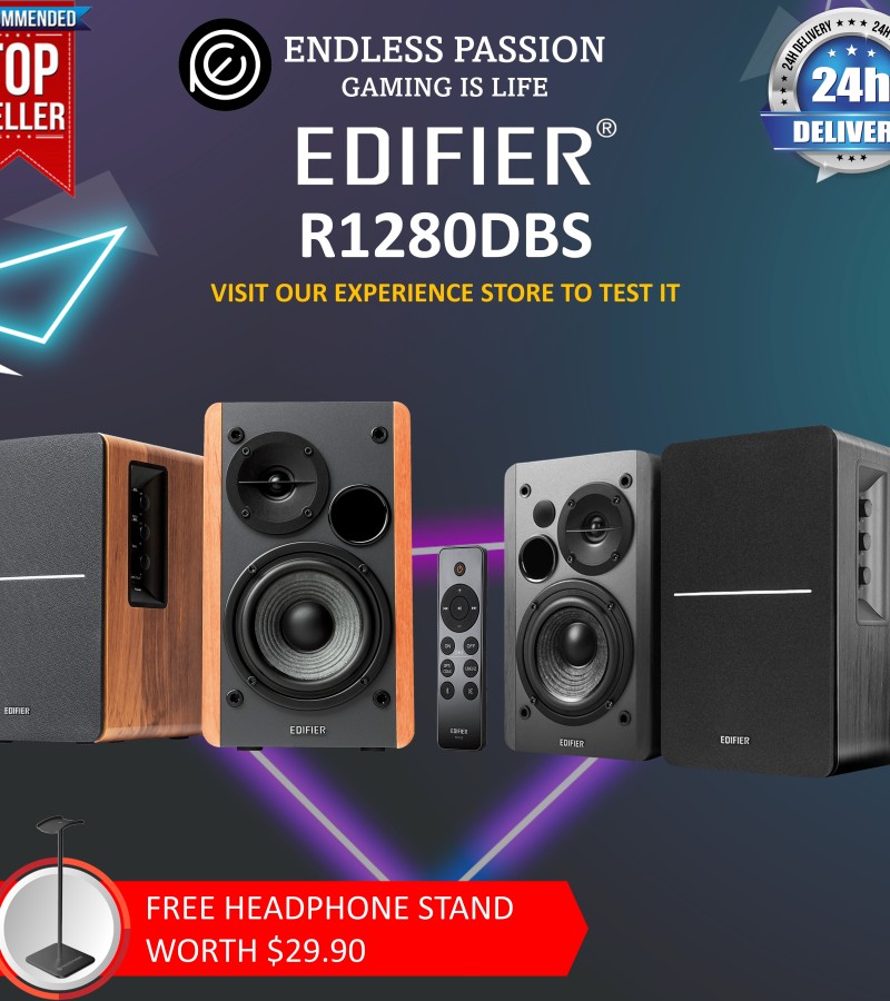 Edifier R1280DBS Active Bluetooth Bookshelf Speakers - Optical Input - 2.0 Wireless Studio Monitor Speaker - 42W RMS with Subwoofer Line Out